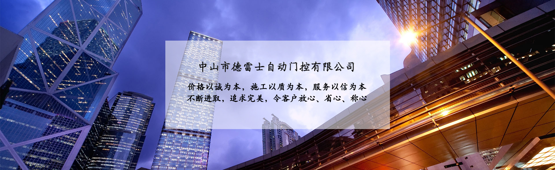 中山市德雷士自動門控有限公司代理中山松下自動門、中山松下感應門、及其旗下品牌松下(Panasonic)自動門、旋轉門、型材門、松下門禁系統(tǒng)、地彈簧、閉門器等系列產(chǎn)品。 松下Panasonic一直致力于憑借不斷創(chuàng)新的技術營造為各個區(qū)域的用戶做出最佳解決方案,在自身領域處于領先地位;松下自動門控系統(tǒng)廣泛應用于寫字樓、機關單位、大型企業(yè)、學校、醫(yī)院、智能小區(qū)等領域。在用戶心中有良好的口碑及信譽度。 松下(Panasonic)自動門控系統(tǒng)包含:自動感應門、旋轉門、90度平開門、圓弧型門、重疊門、緊急逃生門、醫(yī)用門、氣密門、鋁合金型材門、松下門禁系統(tǒng)、家庭智能鎖、地彈簧、閉門器等系列產(chǎn)品。 德雷士自動門控有限公司從事智能門控十余載,精英匯聚;公司具有完善的管理體系,對每位客戶都進行檔案管理,跟蹤服務,定期回訪,終生維修。提供急修12小時解決,一般維修48小時解決的服務,完全能解決您的后顧之憂。 公司的質量方針 科學管理確保的工程質量 真誠服務贏得客戶信譽 持續(xù)創(chuàng)新打造企業(yè) 公司的服務宗旨 價格以誠為本,施工以質為本,服務以信為本。 實實在在做人,老老實實做事,以我們的辛苦換來客戶滿意的微笑,這就是我們的追求! 公司的目標 ...